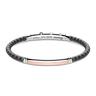 Zancan bracelet with silver tag and rose gold insert. Pressure closure with snap safe made from hypoallergenic steel. Settable to sizes 19, 19.5 and 20 cm. 925 silver inserts with a total weight of 2.70 g. Rose gold inserts with a weight of 0.40 g. Closure made from 316-L medical steel.