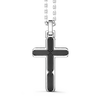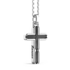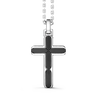 Silver necklace with roller chain and cross pendant. The pendant has openings with internal black grooves in relief on a glossy surface. Decided and bold, a glamorous accessory with a strong meaning. Necklace weighing 5.00 g made from 925 silver. Pendant size: 2.5 x 1.3 cm. Black ruthenium treatment.
