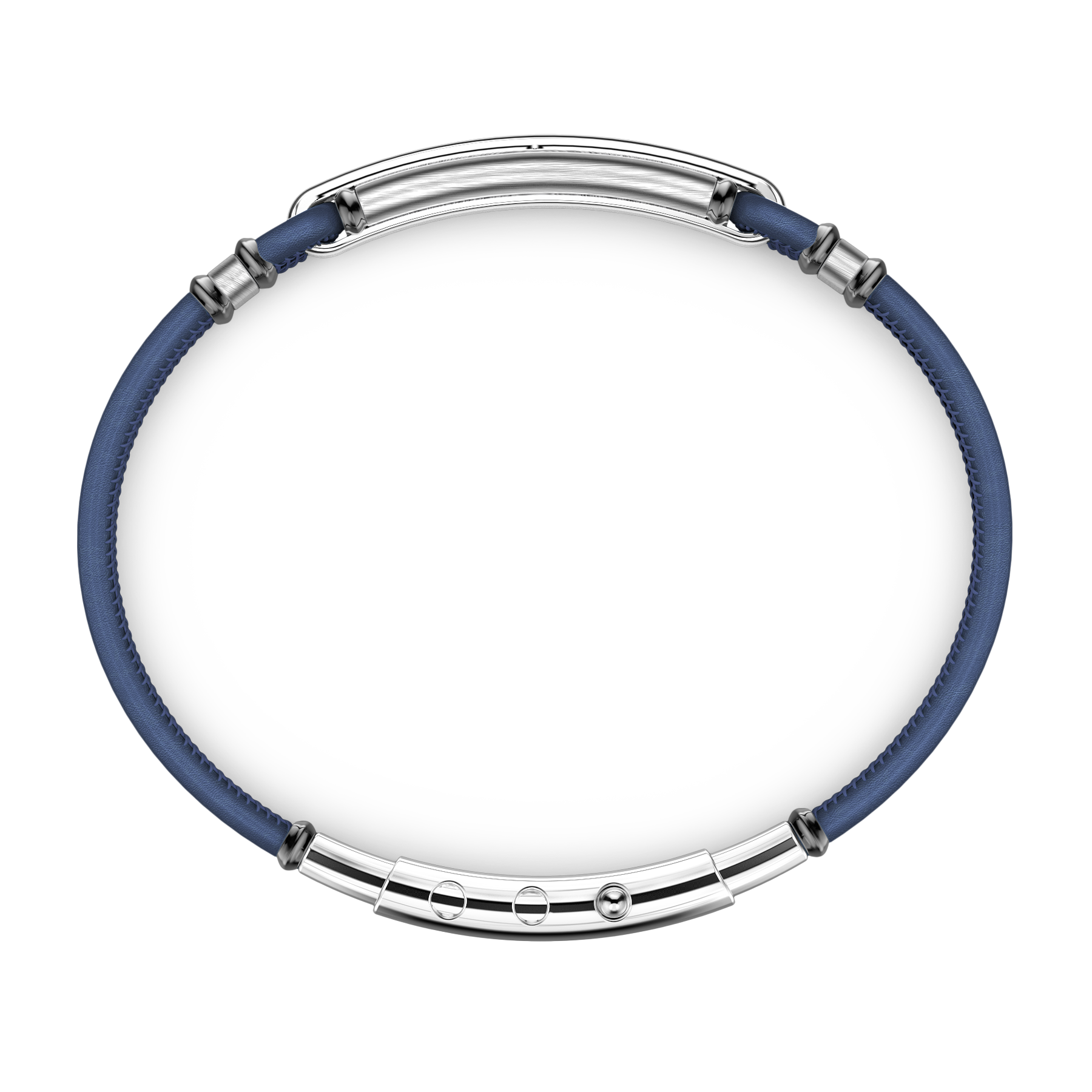 Blue Leather Bracelet with Silver Tag and Black Stones