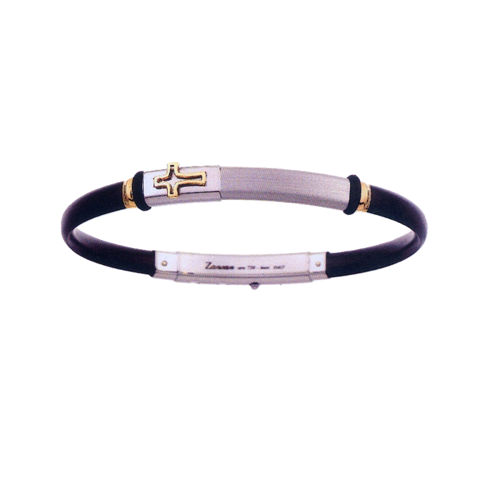 Black Silicone & Silver Bracelet with 18K gold inserts and Cross