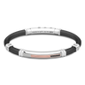 Black Silicone Bracelet with Silver Tag and Rose Gold and Black Stone