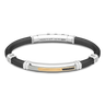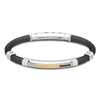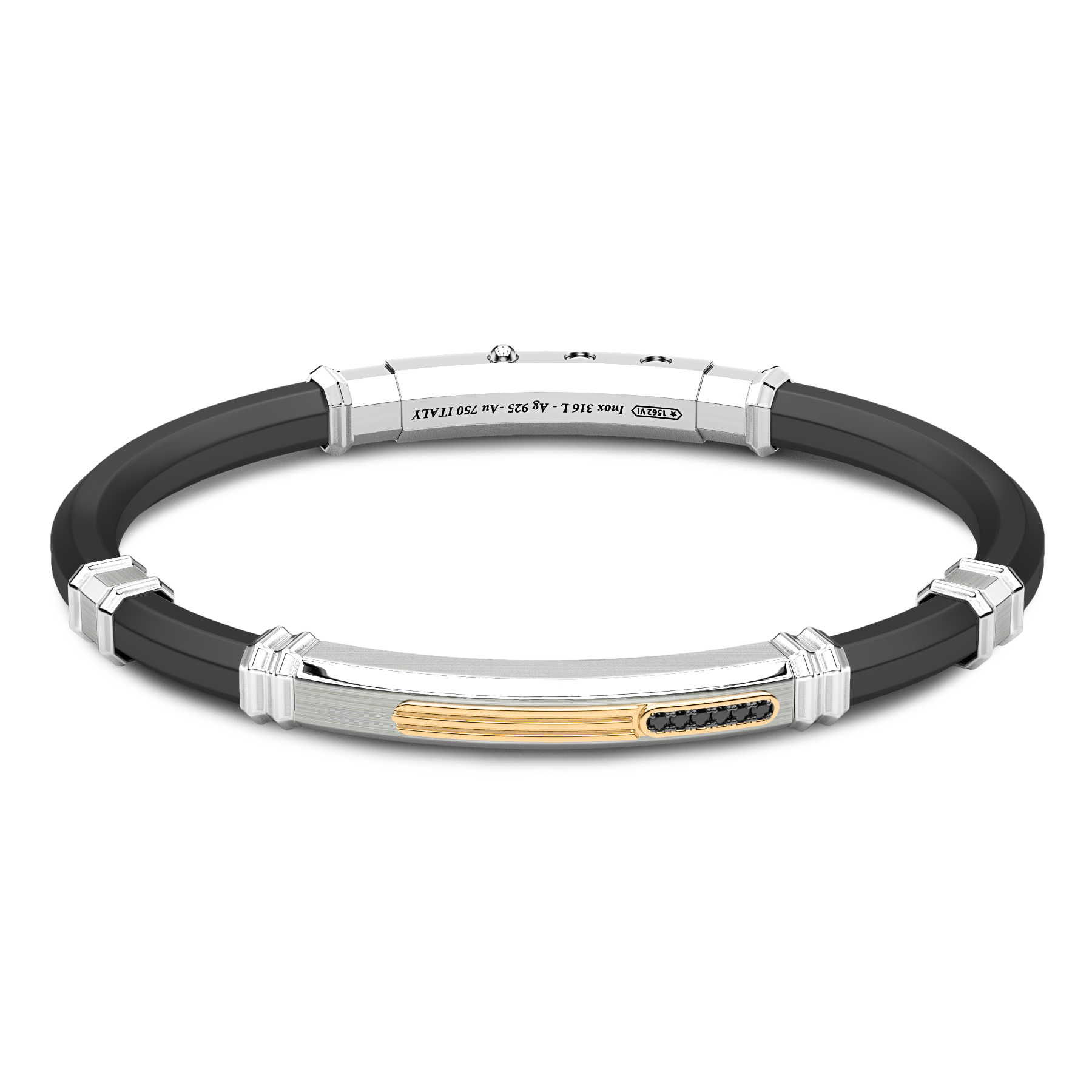 Black Silicone Bracelet with Silver Tag and Yellow Gold and Black Stone