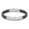 Zancan bracelet with silver tag and rose gold insert. Pressure closure with snap safe made from hypoallergenic steel. Settable to sizes 19, 19.5 and 20 cm. 925 silver inserts with a total weight of 3.70 g. Rose gold inserts with a weight of 0.04 g. Closure made from 316-L medical steel.