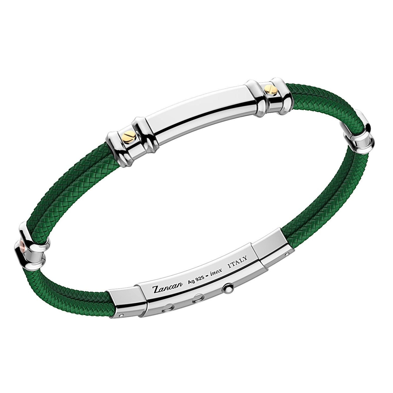 Green Silicone Bracelet with Silver Tag and Yellow Gold Details