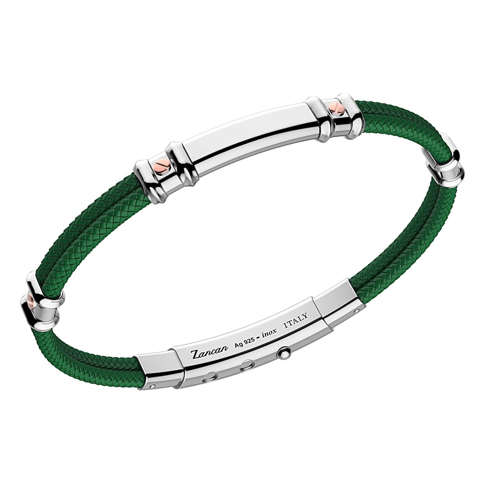 Zancan bracelet with silver tag and rose gold insert. Pressure closure with snap safe made from hypoallergenic steel. Settable to sizes 19, 19.5 and 20 cm. 925 silver inserts with a total weight of 2.50 g. Rose gold inserts with a weight of 0.45 g. Closure made from 316-L medical steel.