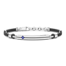 Bracelet en argent, kevlar noir et laque noire. Élégant et décisif. Kevlar souple et robuste, finition brillante et satinée argent et laque noire. Des contrastes clair-obscur qui font ressortir votre style et rendent ce bracelet unique. Le fermoir mousqueton et les maillons sont en argent 925.