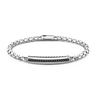 Bracelet en argent avec chaîne tubulaire en blocs. L'étiquette centrale contient une rangée de spinelles noires. Les côtés présentent une décoration rhodiée brunie noire. Élégant, précieux et lumineux. Un bracelet unique adapté à tous les looks. Bracelet en argent et spinelles noires. Bracelet en argent 925 d'un poids de 31,40 g. Traitement rhodiage noir et blanc. Spinelles noires. Fermeture à pression. Tailles disponibles : 19, 20 et 21 cm.