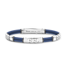 Bracelet en cuir naturel bleu avec éléments en argent