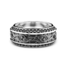 Bague Zancan en argent 925. Cette bague à large bande présente deux rangées de spinelles noires sur ses bords, tandis que la partie centrale présente un motif floral inspiré de l'architecture gothique, avec un contraste de couleurs. Un design décisif, pour un look captivant. La bague fait partie de la collection Gotik, qui trouve ses racines dans l'art gothique, inspirant des pièces uniques en leur genre. La pièce est entièrement réalisée à la main en Italie et pèse 9,60 g.