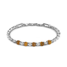 Bracelet à maillons uniquement en argent 925 Zancan avec sphères blanches moletées et sphères en pierre dure naturelle. Le bracelet est composé de sphères moletées en argent de 5 mm. La face avant présente cinq sphères en pierre dure, disponibles en trois versions avec des pierres différentes : onyx, lapis-lazuli et oeil de tigre. Le lien souple permet au bracelet de s'adapter parfaitement au poignet. L'éclat du bracelet est obtenu grâce à un procédé spécial de placage en platine. Un bracelet au design raffiné et sophistiqué, adapté à toutes les situations. La pièce fait partie de la collection Atomosphere, caractérisée par des sphères parfaites, symboles de pouvoir et d'énergie. Le fermoir mousqueton permet un ajustement parfait. La pièce est entièrement réalisée à la main en Italie et pèse 15,40 g.