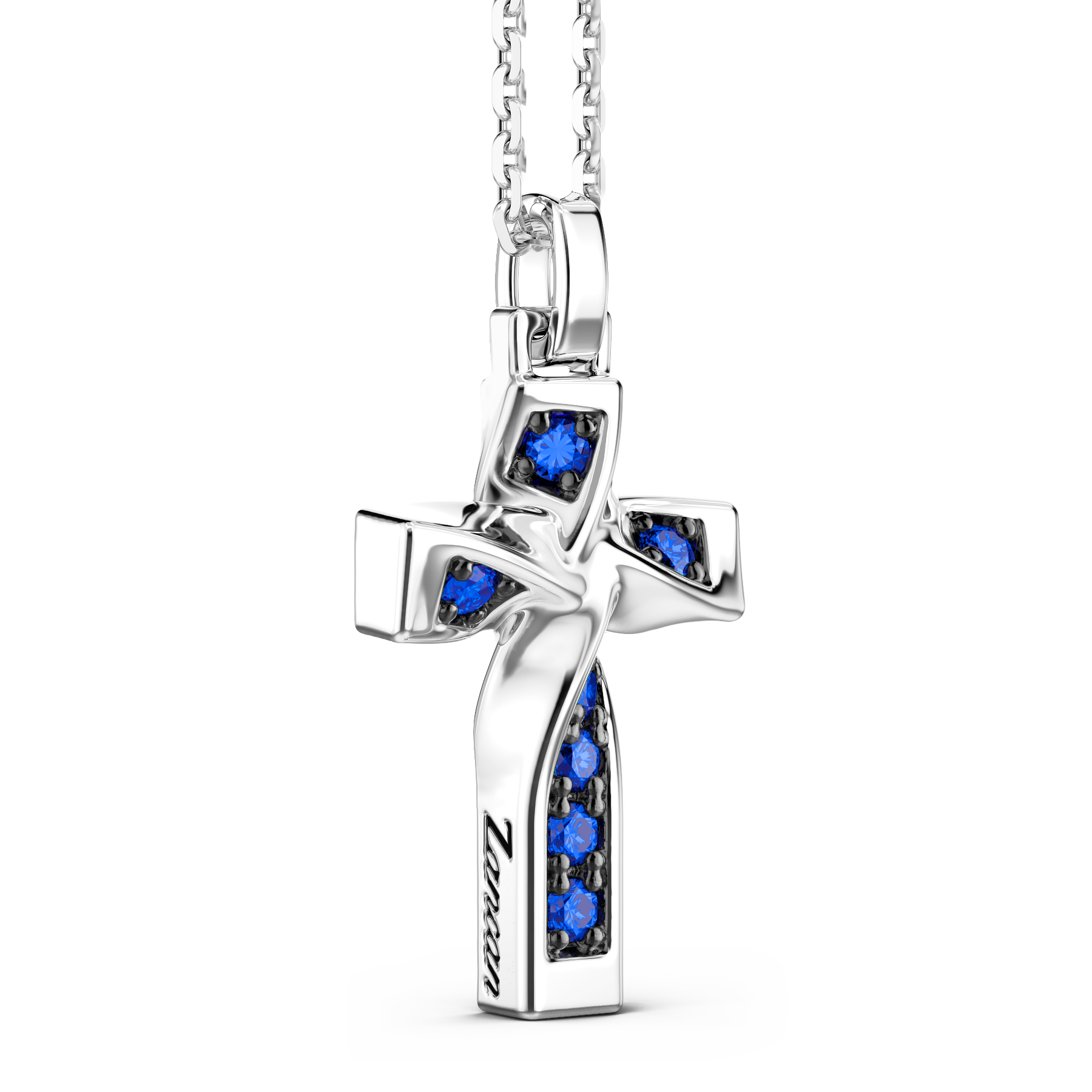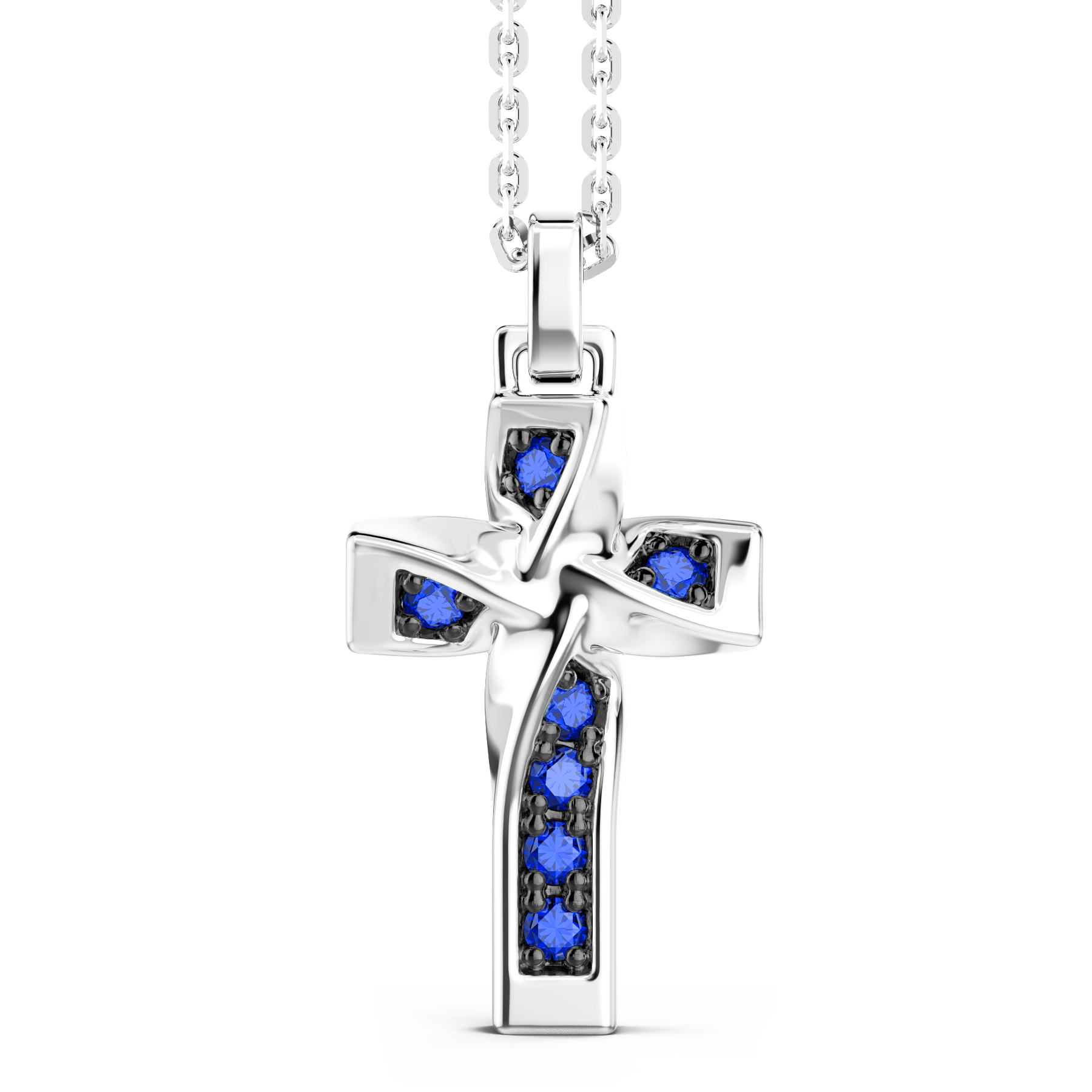 Collier en Argent avec Pendentif Croix & Pierres Bleues