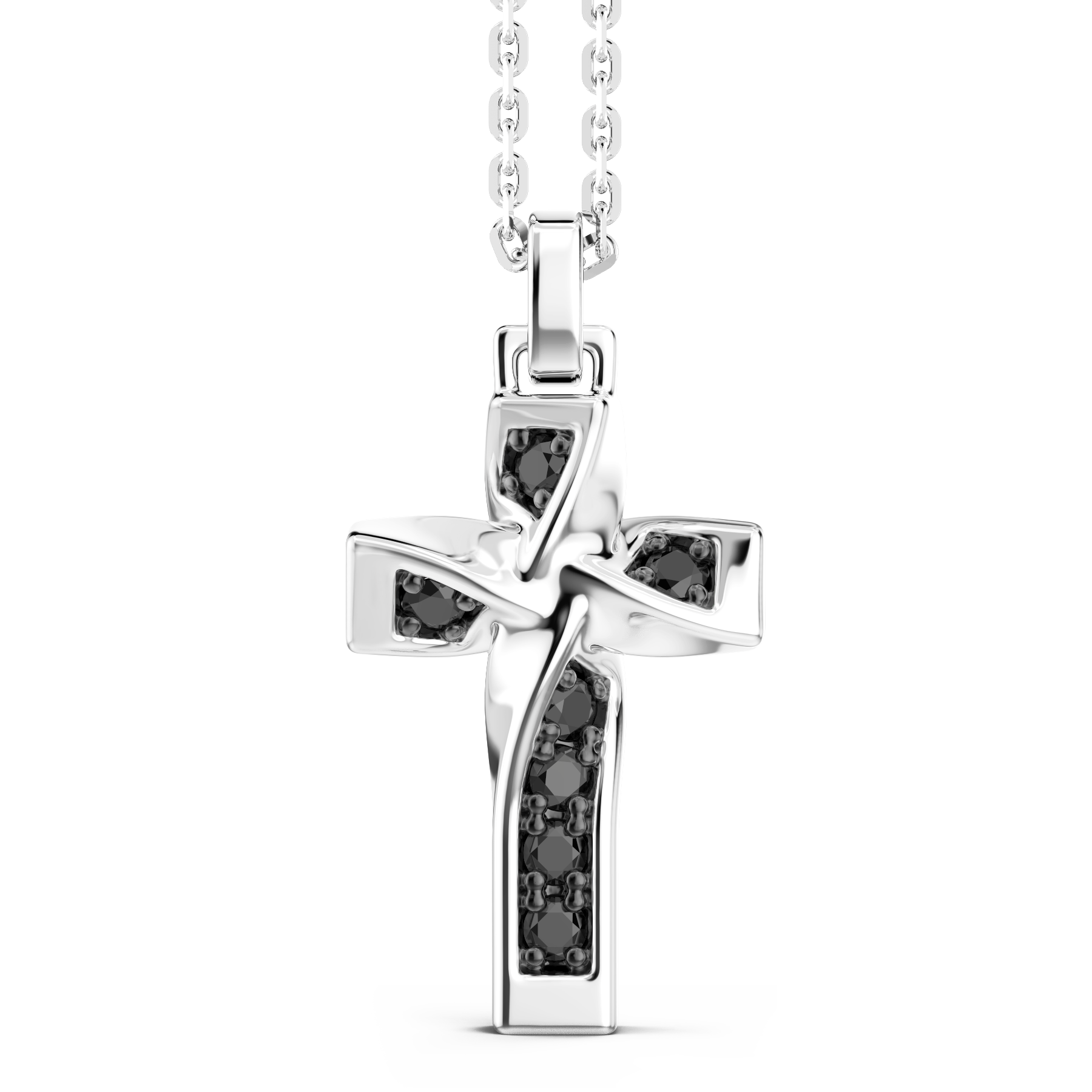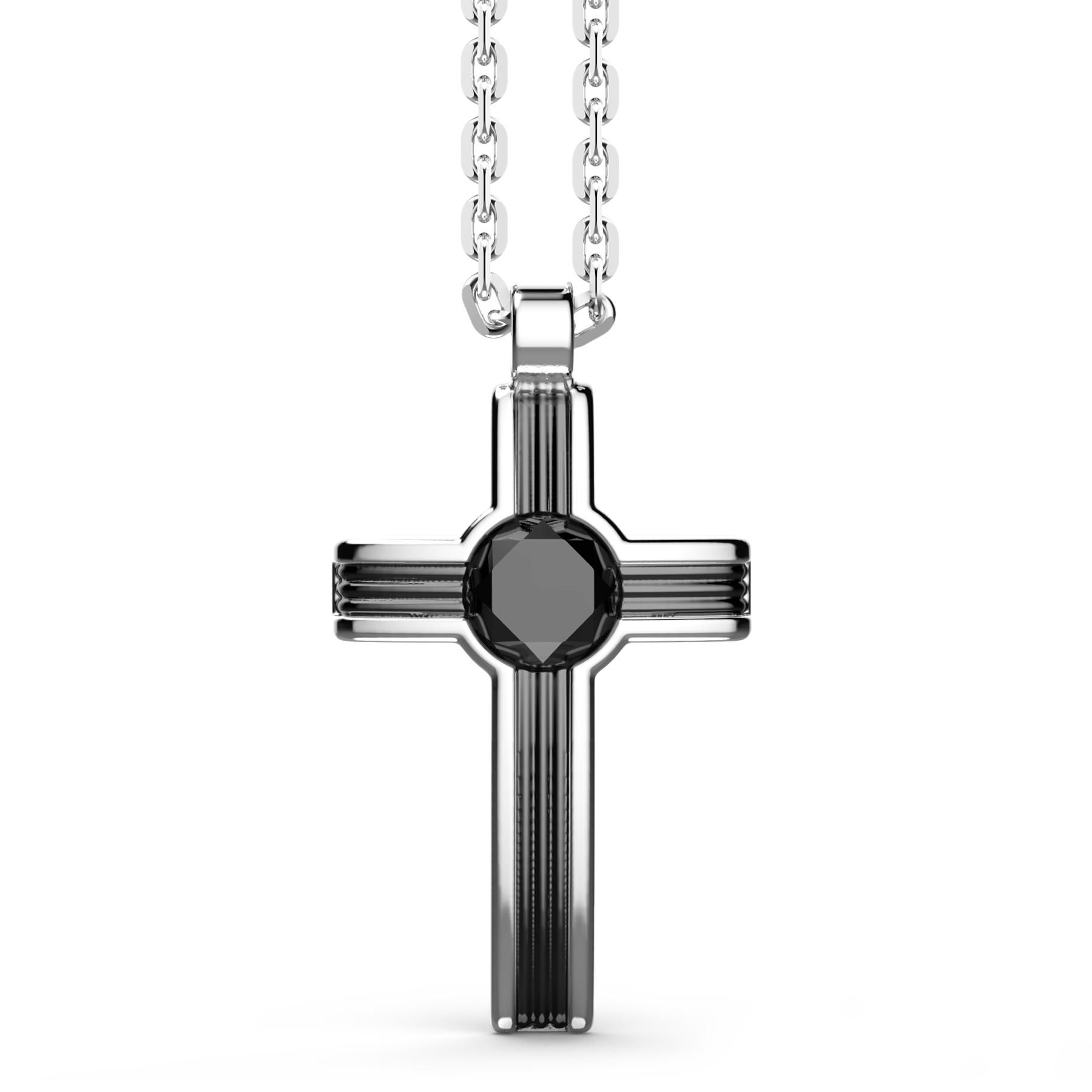 Collier en Argent avec Pendentif Croix & Pierres Noires