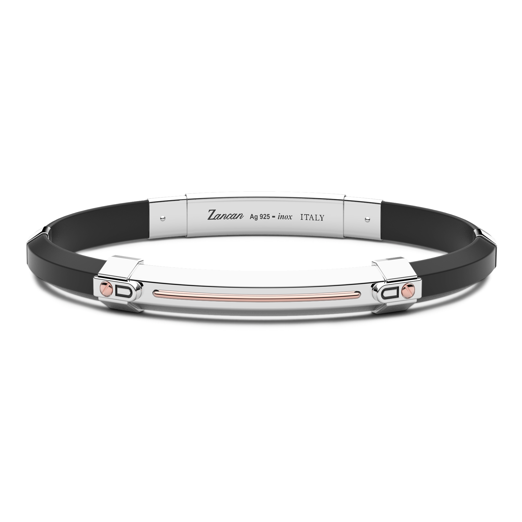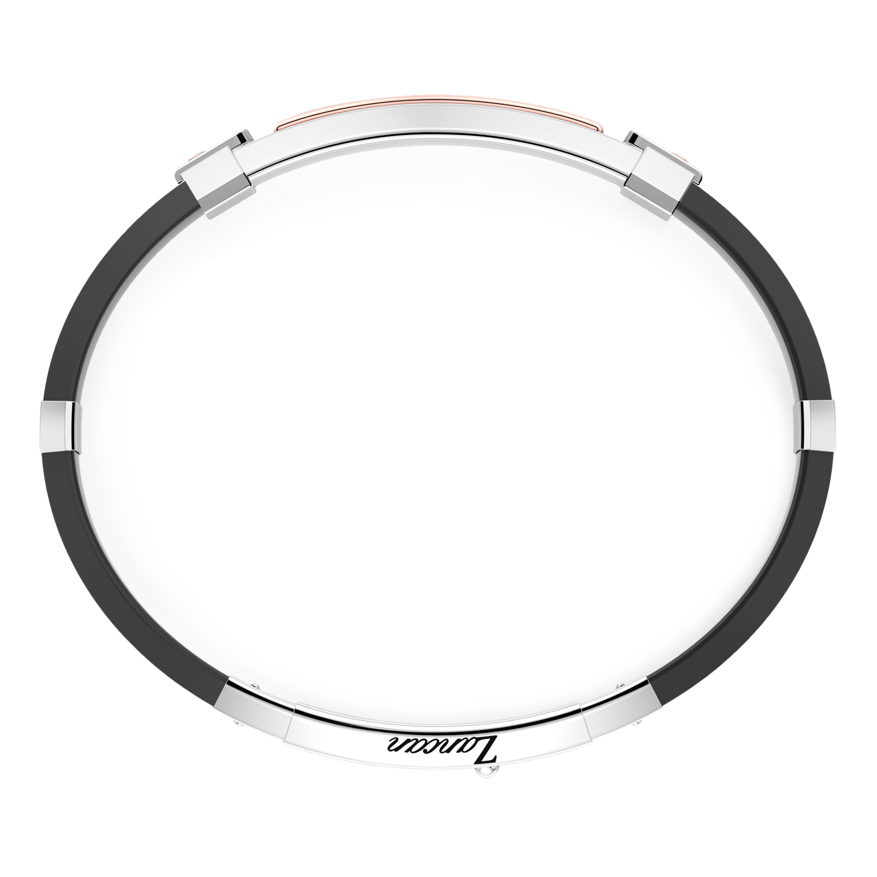Bracelet en silicone noir avec étiquette en argent et détails en or rose
