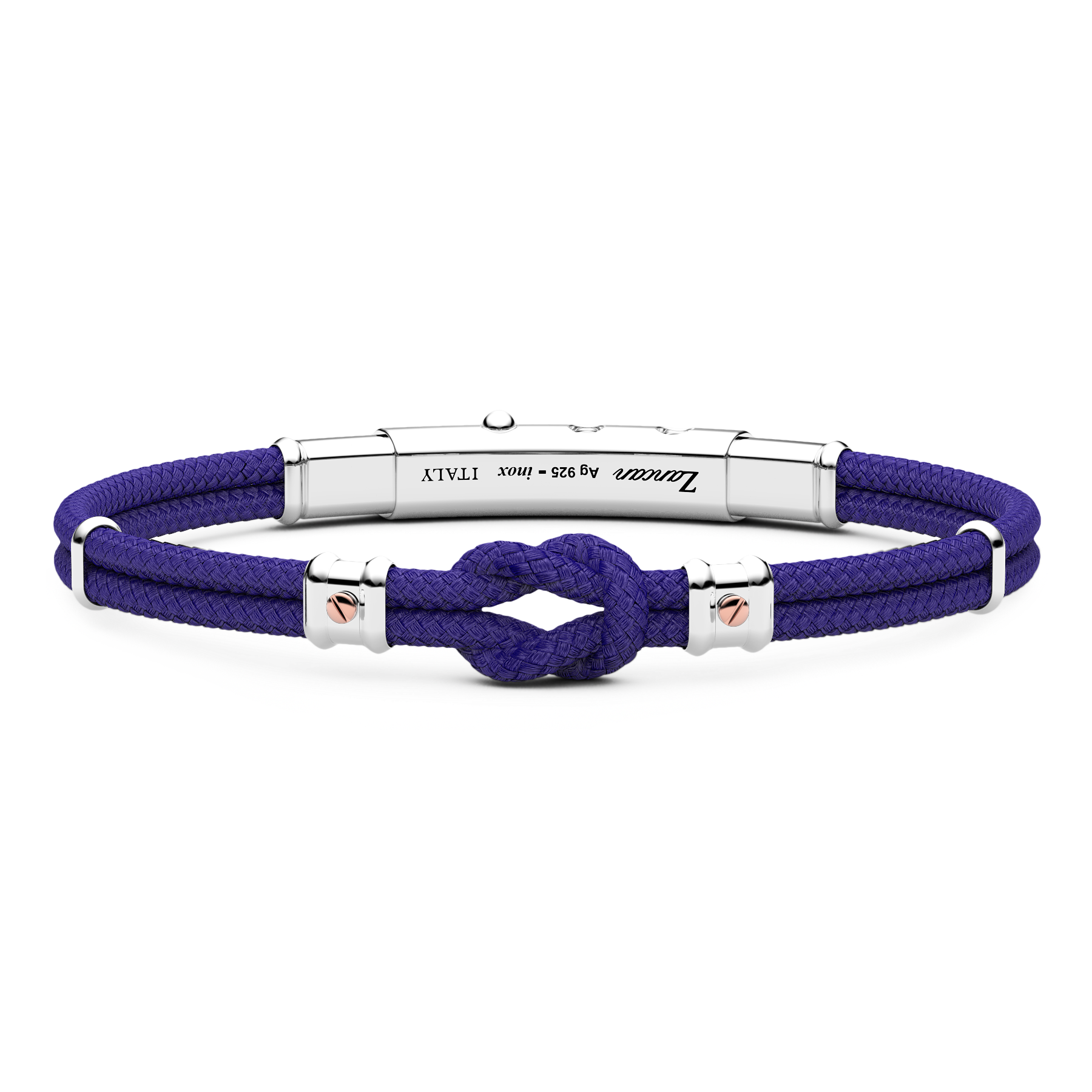 Bracelet en Kevlar bleu marine avec nœud nautique et vis en or rose