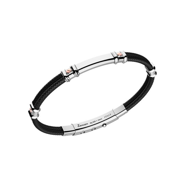 Bracelet en argent avec inserts en or rose et spinelles noires