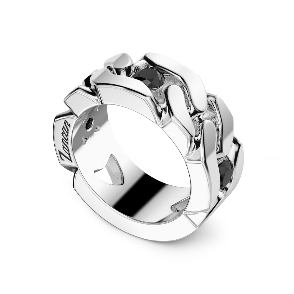 Bracelet chaîne gourmette avec plaque et pierre noire