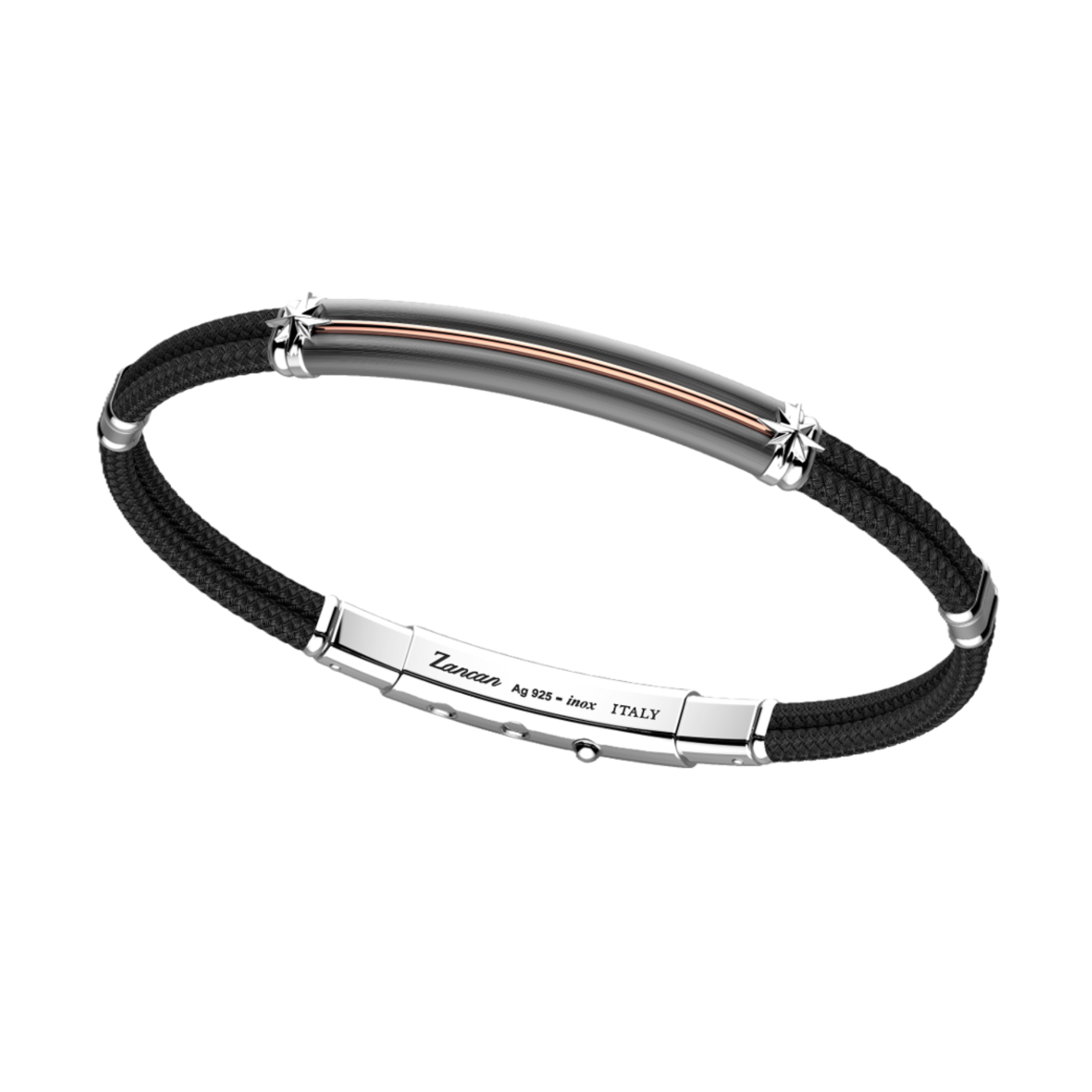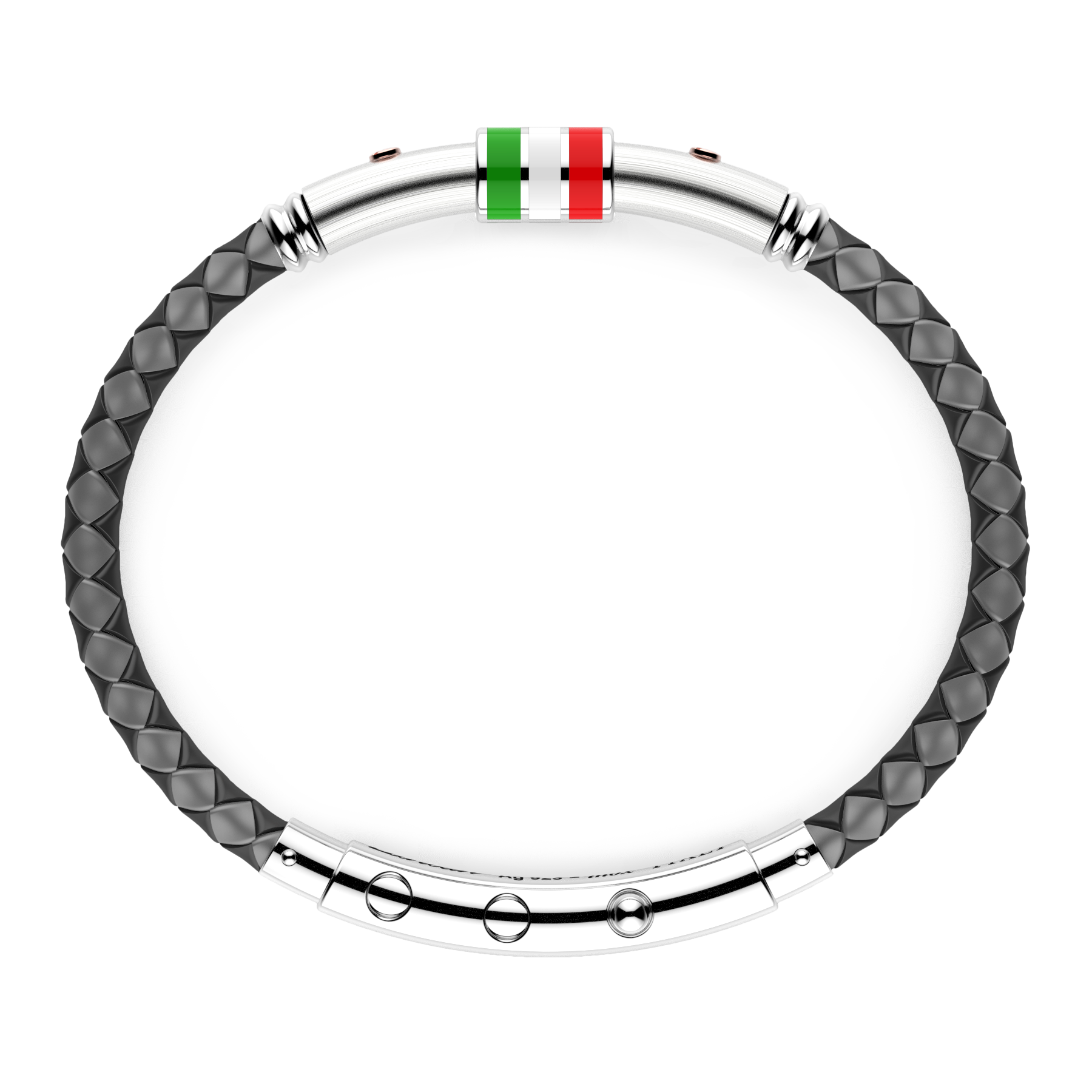 Bracelet en silicone noir avec étiquette en argent et drapeau italien