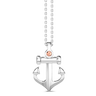 Silver necklace with anchor and rose gold screw. Roller style chain and lobster clasp closure. Necklace weighing 10.50 g made from 925 silver. Details with a weight of 0.01 g made from 18K gold. The standard size is 50 cm.