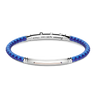 Bracelet en silicone bleu avec étiquette en argent et or rose