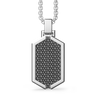 Collier Zancan en argent 925. Ce pendentif étiquette hexagonale est parsemé de spinelles noires. Une refonte contemporaine d'un bijou Zancan classique. Le collier fait partie de la collection Cosmopolitan, inspirée de la vie urbaine contemporaine trépidante. La pièce est entièrement réalisée à la main en Italie, pèse 18,50 g et a une taille standard de 50 cm.